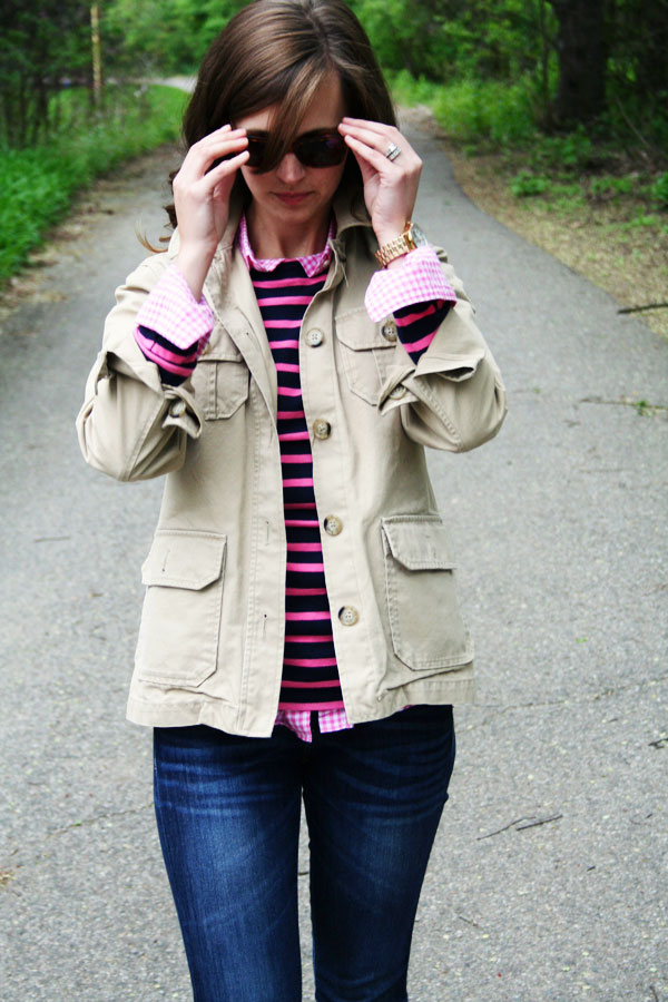 I thought it would be fun and a little bold to pair stripes with gingham - since the pinks were a dead match it made the pattern mixing brainless. Lately I like "brainless" when getting dressed...