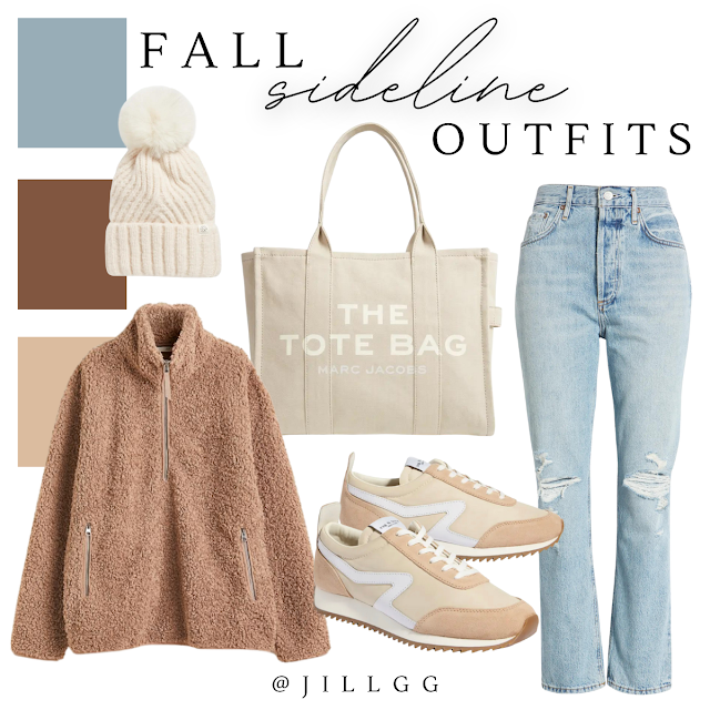 (above) It's all about layers for sideline sports. The weather can be so unpredictable and even totally different by halftime. Sweatshirts and joggers can be elevated with a gorgeous coat and crossbody bag.